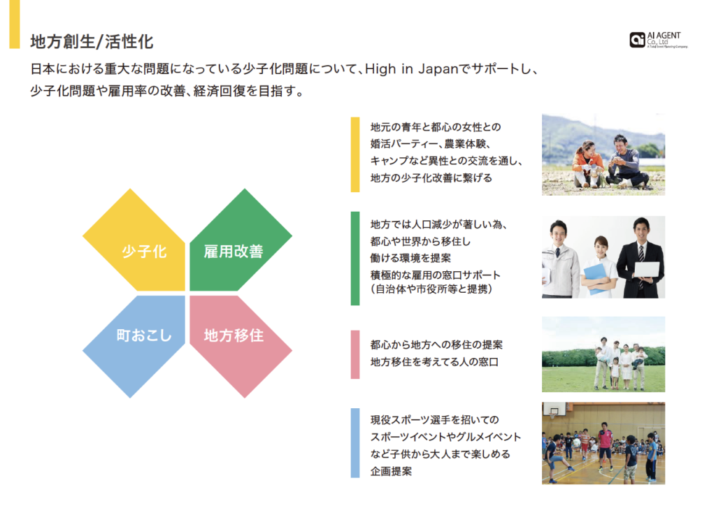 HIGN IN JAPAN(ハイ・イン・ジャパン)は、各地域の魅力を発信し、企業と市町村の連携を促すなどの戦略策定を実地致します。